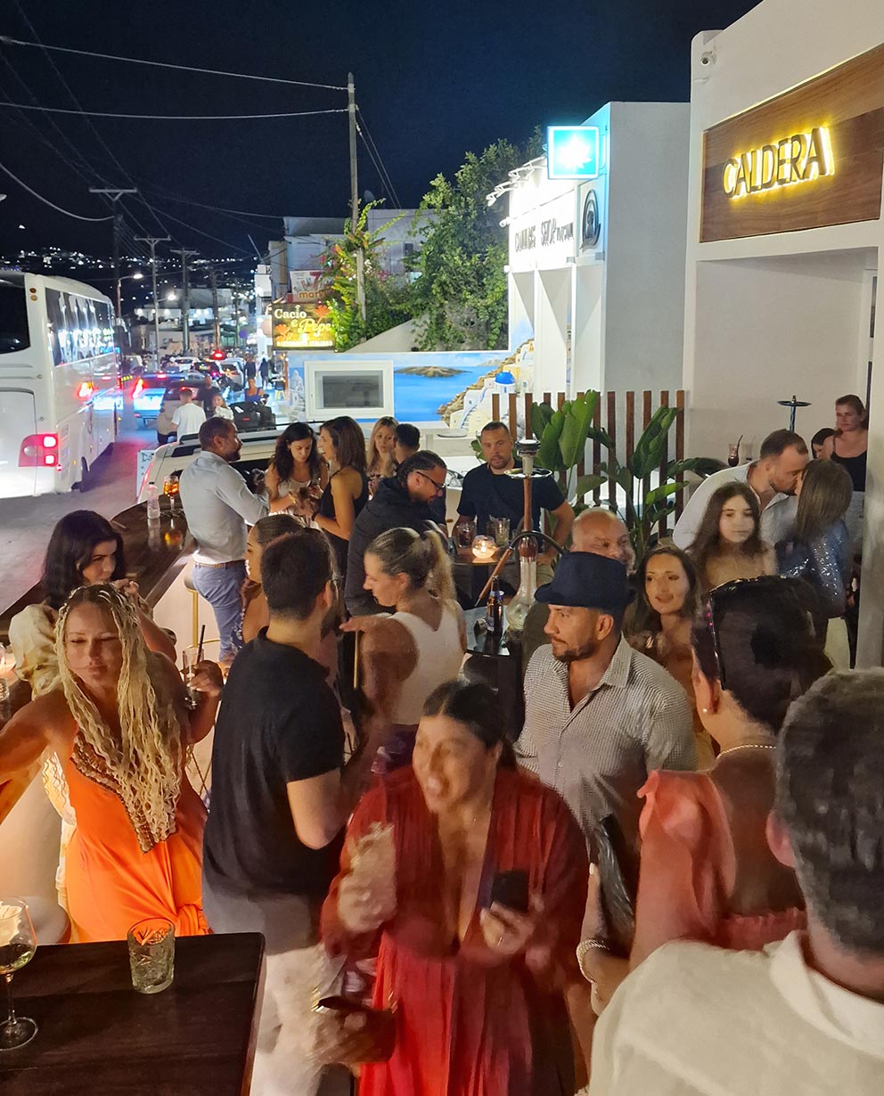Savor expertly crafted cocktails, premium champagne, and a diverse selection of Greek wines, all while enjoying the vibrant energy of Fira and the unique charm of Santorini.